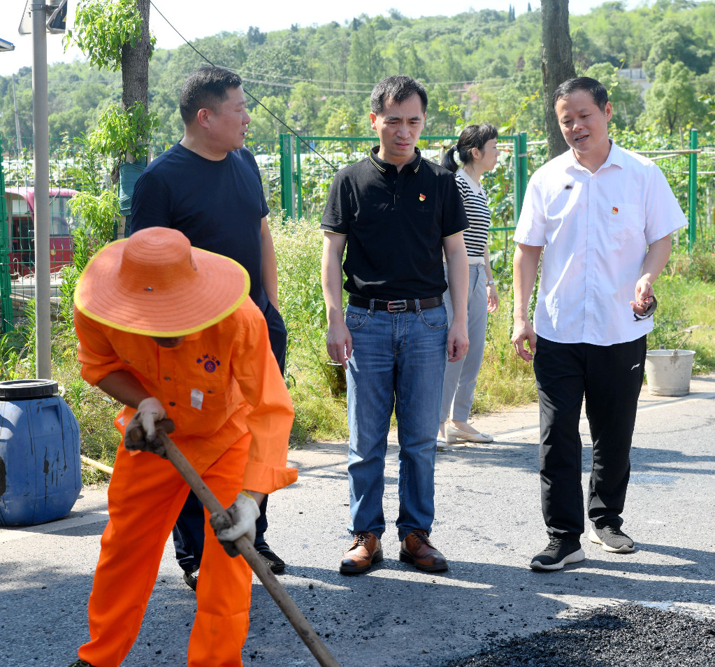 茶马线是云田乡至仙庾镇的重要通道,途经仙庾岭风景区,连接方特欢乐世界和云龙水上乐园,曾获评湖南省“最美农村公路”。在路面修复现场,钟勇军一下车,立即与养护职工亲切握手,连连说大家辛苦了、辛苦了,并嘱咐城郊公路养护中心负责人,一定要坚持以人为本,关心职工身体健康,合理安排工作时间,尽量避免高温野外作业。