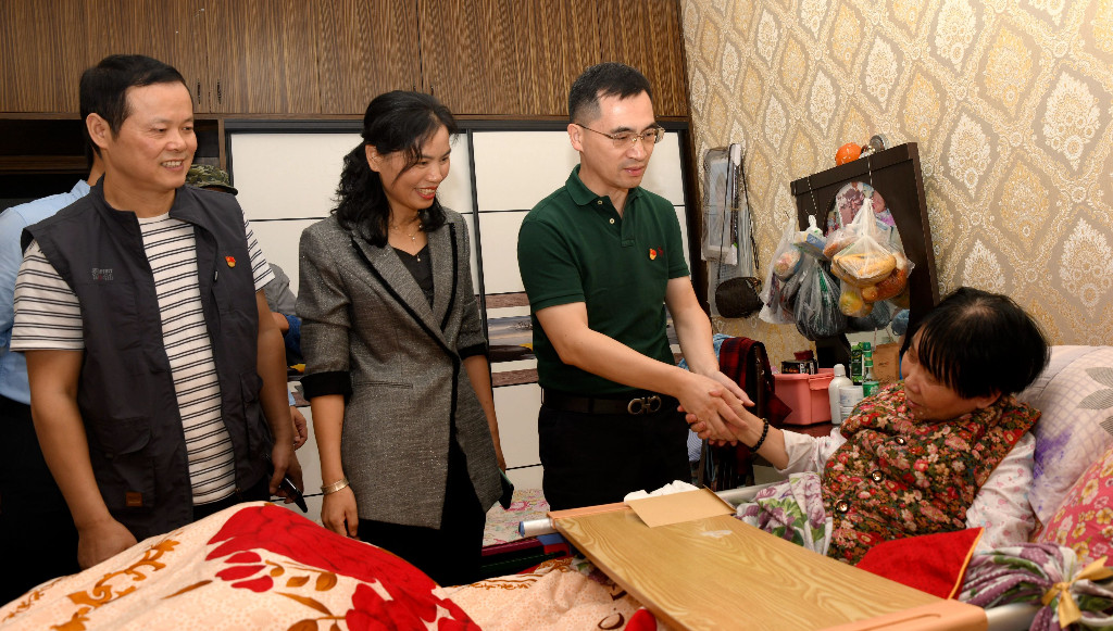 随后,钟勇军一行上门入户看望10位困难群众。在四季花园小区,钟勇军紧紧握着瘫痪病人的双手,勉励她一定要坚定信心,安心养病,相信党和政府不会丢下一个困难群众。