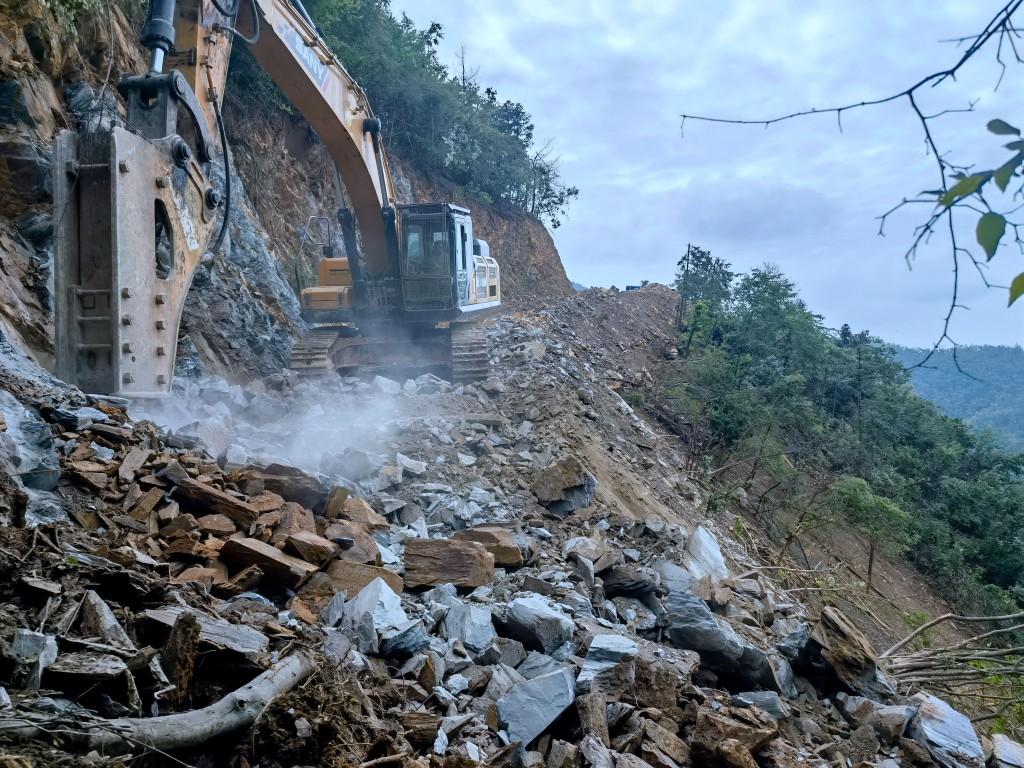 通过多方争取,该路于6月底正式动工,2台挖掘机奋力掘进。为确保施工质量,该村党员志愿者邹富林天天坚守工地,饿了煮方便面、渴了喝山泉水,抢抓晴好天气,硬是在海拔700多米的高山上,开辟出了一条长4.5公里、宽6至8米的新路。