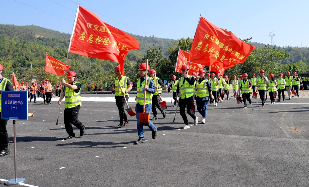 “报告总指挥,党员应急抢险队集结完结,请指示!”“按既定方案,开始!”随着株洲市交通事务中心党委书记、主任钟勇军一声令下,11个应急抢险临时支部、146名党员迅即开赴抗冰保通应急演练现场,一时间,演练现场党旗飘扬,号声振天,“党建引路、畅行株洲”八个大字熠熠生辉,这是今年10月31日,株洲市交通事务中心党建与普通国省道公路抗冰保通应急演练深度融合的生动场景。