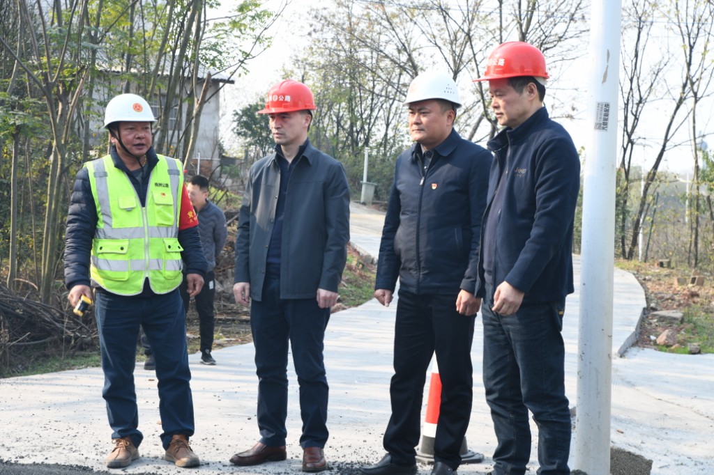 12月19日,株洲市交通事务中心党委书记、主任钟勇军,副主任易树松一行,深入S104线石峰区龙头铺路段中修工地,督导项目建设情况。
