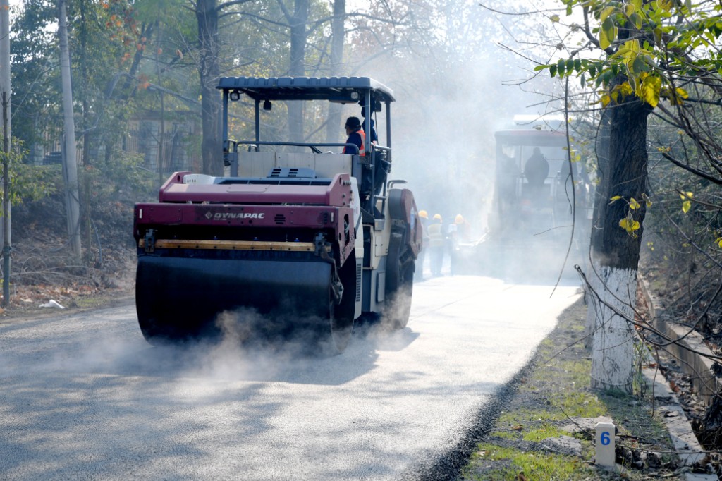 本次中修项目位于龙头铺路段,长2.45公里,路基宽8.5至9米,采取先铣刨5厘米,后碎石封层1厘米,再摊铺4厘米厚沥青混凝土,压实后施划标线、补齐公路标志标牌,预计12月底全面完工。